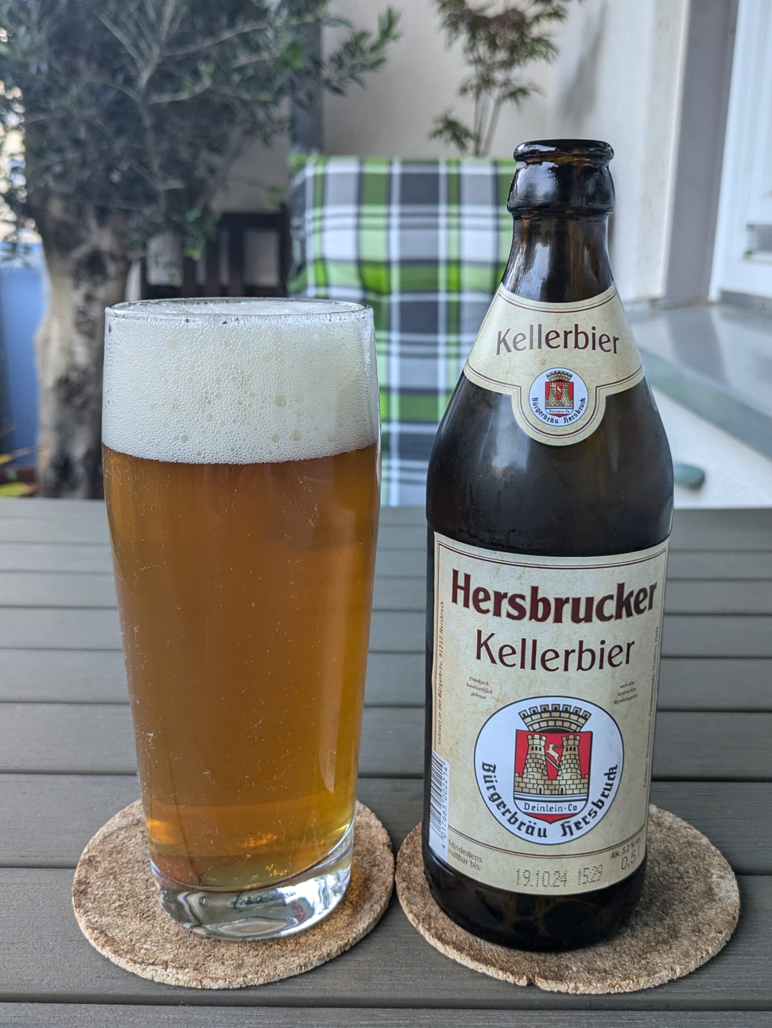heute hat sich mal wieder ein neuer Vertreter aus Mittelfranken zur Bierprobe auf meinem Balkon im Kölner Süden eingefunden: Und zwar das Hersbrucker Kellerbier der Bürgerbräu Hersbruck aus der gleichnamigen Kleinstadt im Zentrum des mittelfränkischen Landkreises Nürnberger Land gelegen.